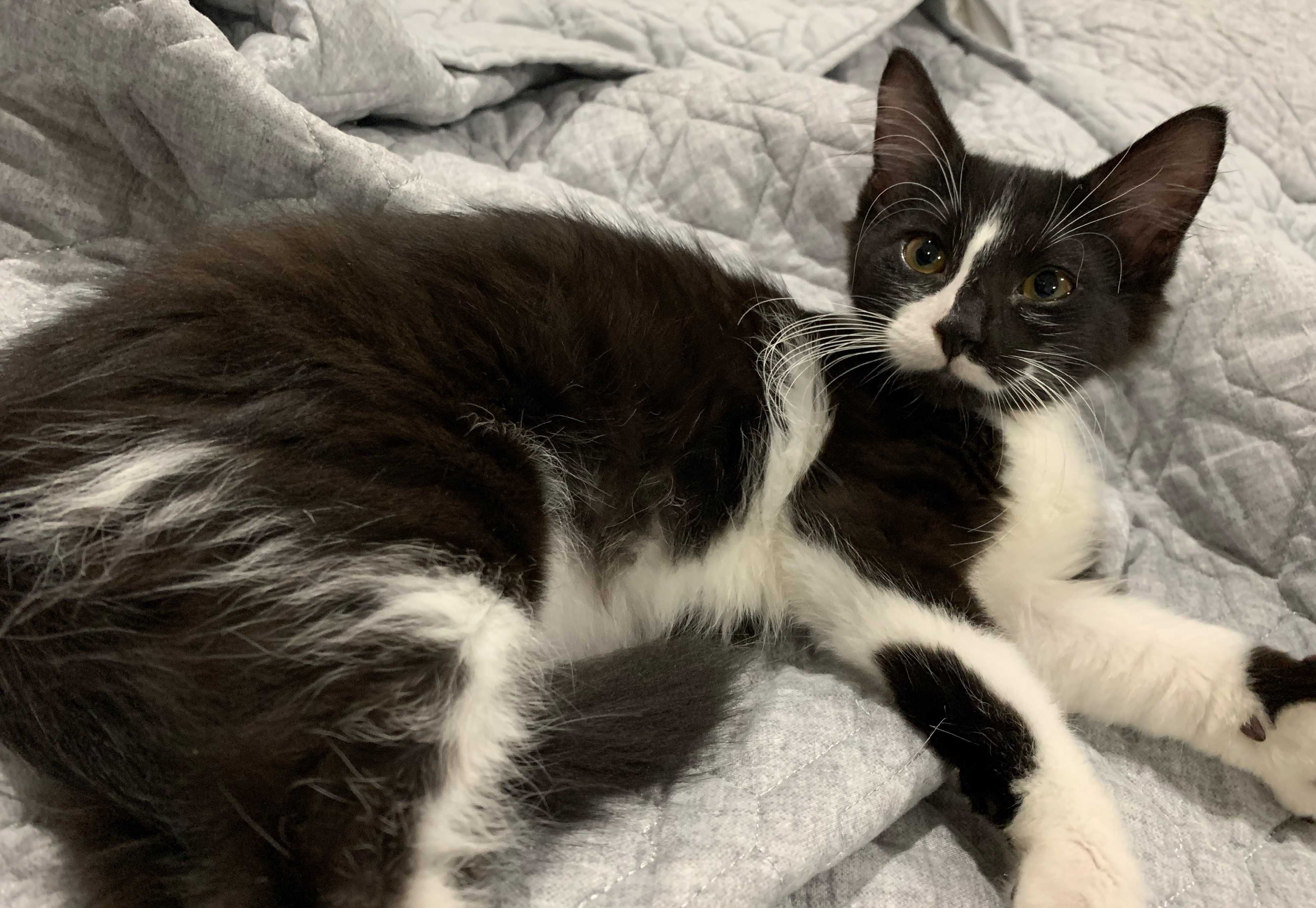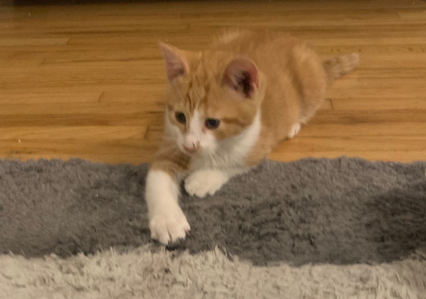 Meet Sweeper! He is a young kitty who needs a forever home. He loves cuddling up in bed or on the couch with his foster family and listening to Bob Marley (his tail dances to it!). Sweeper was found in a street sweeper without his family and needs lots of attention from those he loves. Sweeps would probably be happiest in a family with other playful and fun-loving pets and with lots or paper he could chase around. Bring this adorable little baby into your home soon!