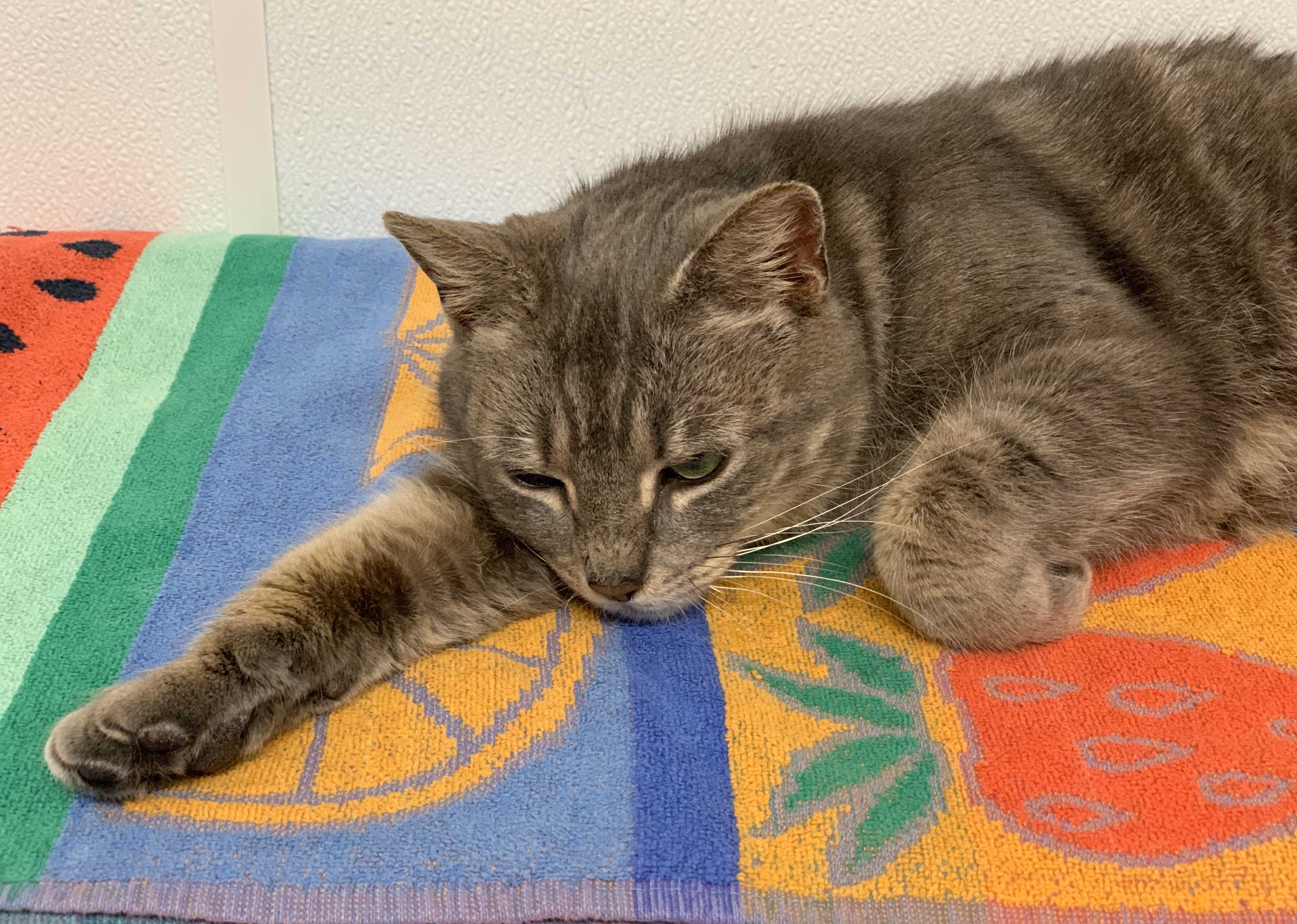 Sunflower is an adult kitty who was turned out of her home. Found by the side of the road, Sunflower can be cheerful and friendly, with more than a bit of mischief in her personality. Up to date on her shots, this cutey is ready for her forever home. Sunflower can be visited at the Kitty Cottage.