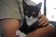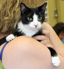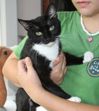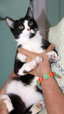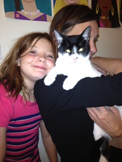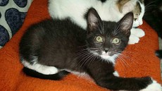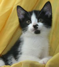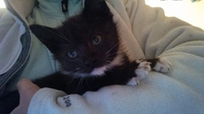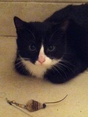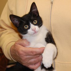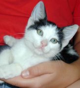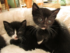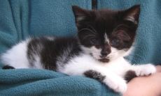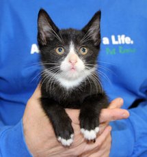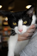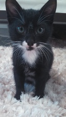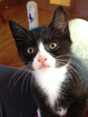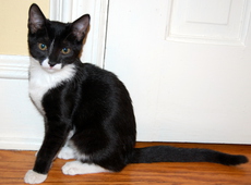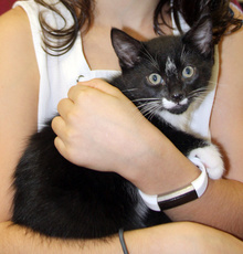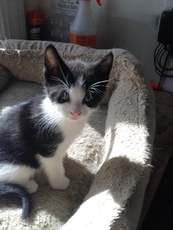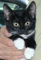 Salt is Pepper's sister (also featured on the website) and this 15 week old kitten is black and white (tuxedo) with a little pink nose. She has a great purr, too!