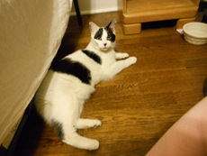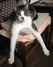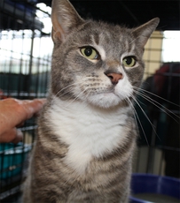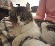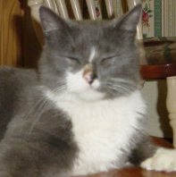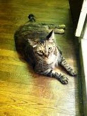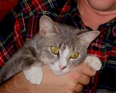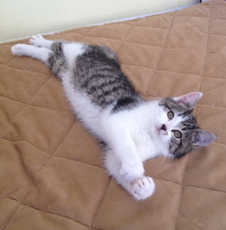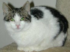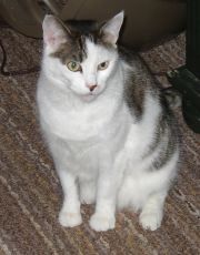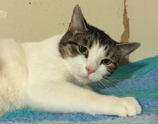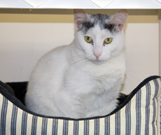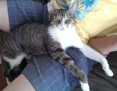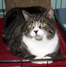 What a true Sugar Daddy this big hunk of male cat is! Sweet and mellow with an engaging personality, our Sugar Daddy would make for a perfect family cat. He loves to be petted, enjoys human contact, is sociable and good natured. Nothing seems to phase this big boy. We haven't seen him around dogs, but feel there is a good chance he will be comfortable with canines who like cats.