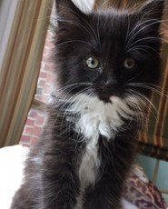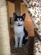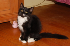 Sam is the tuxedo brother of Sabrina, also featured on our website. Only 4 months old, Sam already knows how to win your heart with his kittenish antics, lively curiousity and great sense of fun. Sam is in good health and up to date with all kitten shots.