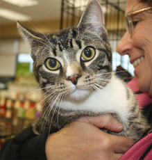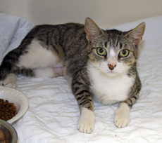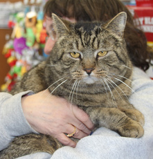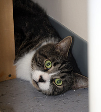 Susie is a lovely young tabby, with beautiful green eyes that will look longingly at you. She is very sweet and affectionate with a delightful personality. Our Susie is a real cutie and deserves your attention if you like tabbys.