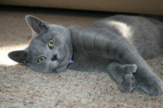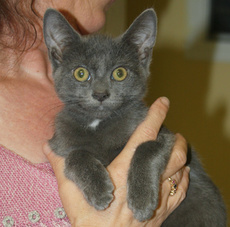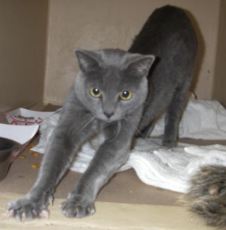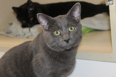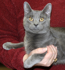Sushi is a super sweet male Russian Blue kitty, who knows his name. He was given up by a family who developed bad allergies. He loves to sit on your lap to be petted. Can you give him a home again?