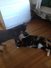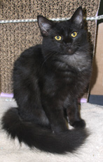 Salem (born May 15) is a playful, fun boy! He'll greet you and immediately want to play. Even if you're busy, he'll just follow you around just to be near your side. He is very curious and active. He enjoys playing tag with his sister, Midnight, and then will cuddle with her and bathe her. He loves to cuddle with people too.