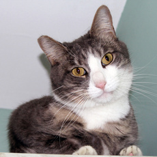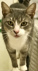 Sailor is a handsome grey tabby/white kitten, about 5/6 months old as of 8/18/18. Brother to Hudson (also featured on this website) he is a super friendly, bubbly boy who is fun, fun and more fun. You will enjoy his antics and appreciate his companionship. He should be a good family kitten. To be considered for adoption of Sailor, please complete our online cat application to be found on the Pet Rescue website. kc