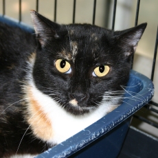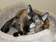 Suzi a sweet tortoise/calico is another refugee from the streets although