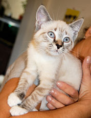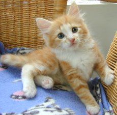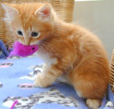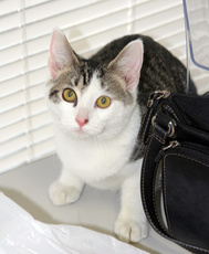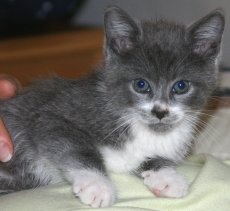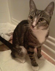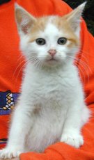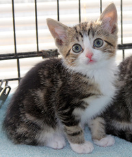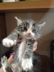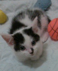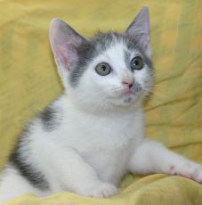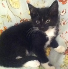 Sylvester is cute, cute, cute! At around12 weeks old and 3 1/2 pounds, he can turn almost any household object into a toy to amuse himself. He enjoys exploring every nook and cranny with his buddies, the other cats and dogs in his foster home. Sylvester will make a great addition to any family.