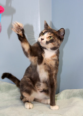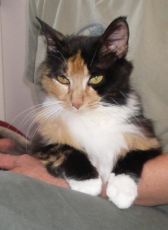 Sally is a beautiful and graceful calico. She is probably about 18 months old and will be on the small side. She is very gentle and sweet. Sally was rescued in Yonkers by a lovely couple who couldn't keep her when they moved. Their love allowed Sally to blossom into a wonderful family addition. She is now in a foster home with other cats including her son Sammy, and rabbits. She enjoys all of the attention she gets by her foster parents and visitors. Sally is up to date on her vaccinations and has been spayed. She is ready to go to her forever foster home.