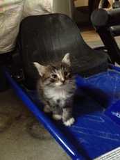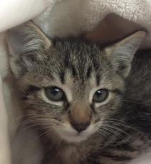 Sally is the cutest kitten we have seen for a while. About eight weeks old as 9/17/2015, this little spitfire is super friendly, playful and courageous. Abandoned in Mt. Vernon, she is a real trooper.