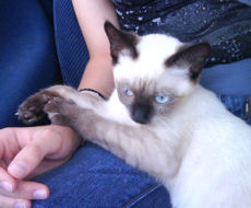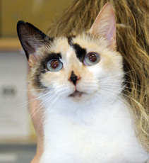 ears and tail. About 2 years old, she was put out onto cold streets when her family moved. Sally has a distinct meow and is very talkative. She is people-oriented and loves to be held.