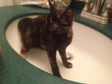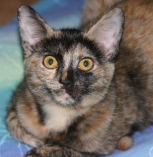 is a gorgeous spayed female Tortie, with beautiful blonde and black markings. She is about 5 months old and very sweet, playful and outgoing. She is being fostered with cats and dogs.
