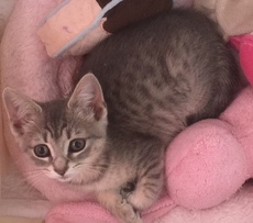 Samantha is an adorable kitten, about 7 weeks old. She is very sweet, playful and friendly. It's hard not to fall in love!