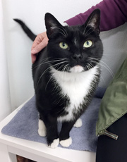 Sylvester came to Pet Rescue with Romeo (also featured) but the two boys are completely different in personality. The tuxedo Sylvester was initially shy, but with lots of tender loving care has turned into one of the sweetest natured, friendliest cats we have, who wants the attention of every human he sees. He will roll over and let you rub his belly. Sylvester should do well in a family environment.