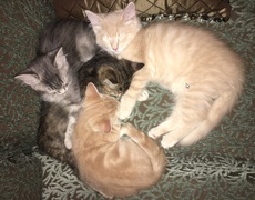Sweet Pea and Olive are 11 week old sisters who are very affectionate and a lot of fun. They have the most beautiful faces and talk to the foster mom as soon as she walks into the room. They love to be a part of the action and play all day with their many toys. We would like them to be adopted together as they are very attached to each other and sleep with their arms around each other.