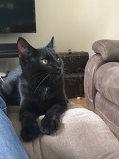 Samantha is a sweet, gentle, mild mannered 8 year old declawed cat who gets along beautifully with children and has lived comfortably with dogs. This beautiful black cat enjoys human attention and is a delight in a family. Unfortunately her owner sadly must find a new home for Samantha as her toddler is suffering from allergies. Samantha is in excellent health and up to date with all vaccinations. To meet Samantha, please contact Art at artkaufer@yahoo.com.