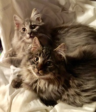 These stunning brothers are 5 month old Maine Coone mixes. The boys are very bonded and always eat, play and sleep together. They are 2 well mannered, gentle souls who love hugs and kisses from their foster mom. Sylvio and Lorenzo are very eager to settle in with a new family and home to call their own.