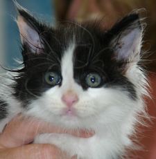 is an adorable little long hair kitten with a cute pink nose and big eyes. He and his brothers are about 8 weeks and very playful.