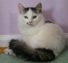 Her name says it all.. this is the sweetest, most affectionate young cat. She has a beautiful, fluffy tail and loves to sit on your lap to be petted. She is about 4 months old.