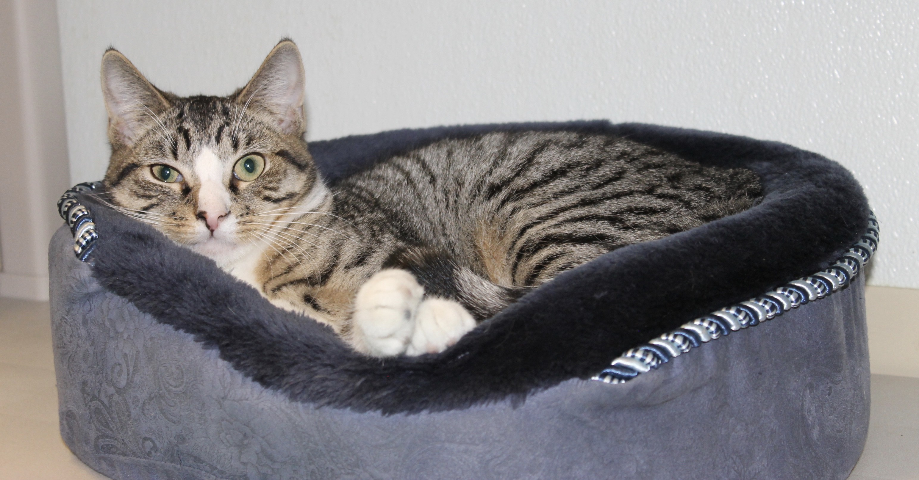 Teddy is a classic tabby with a relaxed personality. This two year old boy never misses an opportunity to be pet. If he's not relaxing in a window watching the world go by, you may find him playing a quick game of mouse or checking in to see if it's time to eat. He's not looking for adventure, just a safe, loving place to call home.