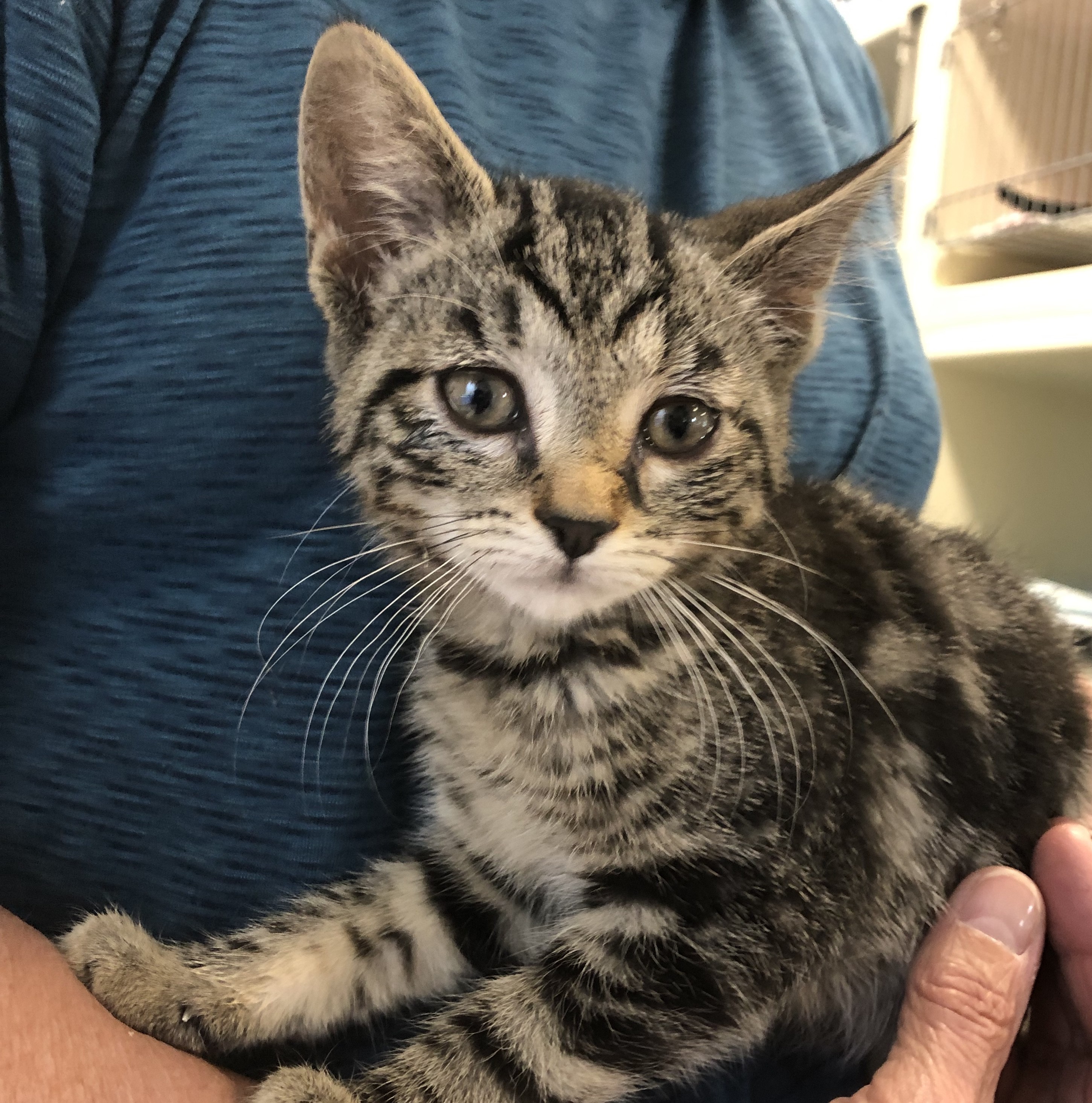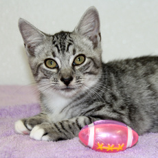 is a adorable male Tabby, about 3 months old and very playful.