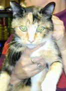 Trisha is a lovely Calico, about 1-2 years old, living in a foster home. She is very sweet and friendly - beautiful like a painting. This quiet, gentle cat loves people, and will follow her special human around, the way some dogs do.