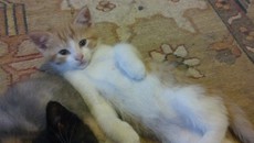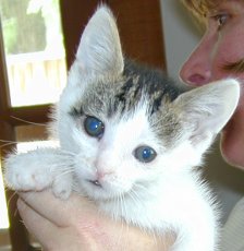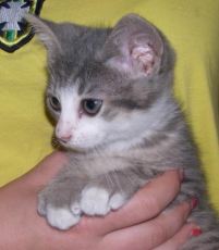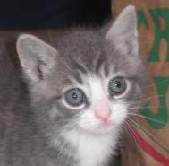 Our Taffy is 100% male and one handsome 5 month old kitty (born april 2011). White with a bit of grey, he is very affectionate, playful and super curious. Rescued from the streets, he now resides happily in a foster home with other cats, dogs and children. All he needs is a permanent loving home to call his very own.