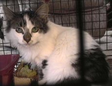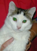 Twitch is a very charming girl, about a year old. She has a slight neurological disorder which causes her to tilt her head. Twitch now resides in a foster home but originally came from Yonkers where she was picked on by other cats - she is all around a very sweet kitty!