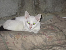 Tara is a beautiful girls that is as friendly as she is pretty. She loves attention and is always ready for a cuddling session. She was picked her up off the highway where she was thrown from a car. (That is why she has a cleft lip; her face was torn open from the road.) She is great with children, although older would be better. Her playful days passed, she would be happy to be petted and sleep with someone. She is litter trained and not too afraid of dogs if they approach slowly. She is delicate and would make a great lap cat. We think she is about 3 years.