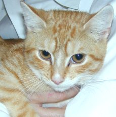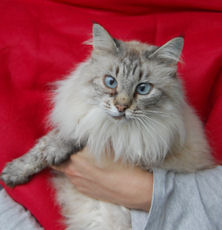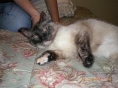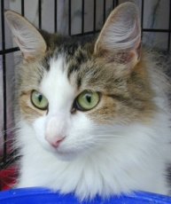 was found wandering the streets and eagerly taken in by a family who looked forward to keeping this huggable little beauty, but after a month the old family allergies showed up and they had to give her up. She about a year old and extremely sociable and vocal, a real personage. She has a clear tortoise coat.