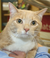 DOB - 5/14/24 Tucker is a sweet boy who loves to play and explore, he loves to cuddle and enjoys chin scratches. He is a very easy going mellow kitty. He is very inquisitive and is a joy to be around! Tucker is in a foster home with a dog and another cat and gets along with both.
