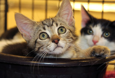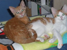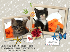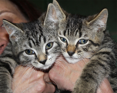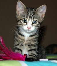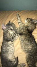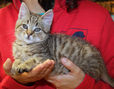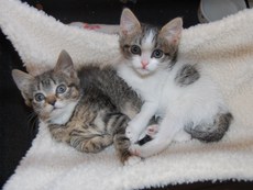 Two adorable and handsome little male kittens (11 weeks old as of 5/23/10)are waiting for their forever home (Baxter was adopted)! Tupper is a mighty hunter of toy mice, a champion wrestler with his litter mates, a limber gymnist and a true lap cat. As for Riley, he zooms and jumps like an Olympic athlete. Assertive and a brave explorer, he's also a handsome, huggable little guy.