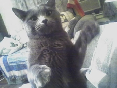 Tricky is a real laid back 6 year old Russian Blue cat. He's affectionate and loves to run to the window to chase pigeons away. Tricky is strictly an indoor cat who has been declawed as well as neutered. The story behind his distinctive name is that as a kitten he would make you think he was going to do one thing, but then do something totally different. Tricky is vibrant and delightful with a wonderful personality. In good health, like many cats, Tricky must eat Hill's Feline CD food (purchased from a vet)to maintain his bladder properly. To meet Tricky, please contact "D" at izapoet@gmail.com.