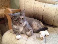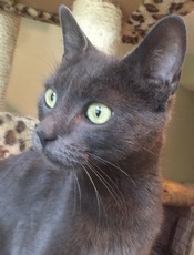 Tabitha is a one year old Russian Blue female who is now enjoying life in a wonderful foster home. Gentle and sweet, this doll was found eating out of the garbage just to survive on the streets. She is around other cats, dogs and kids and gets along with all.