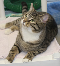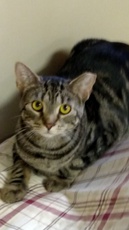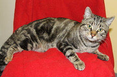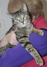 Tara is a 2 1/2 year old (as of 1/8/17) female silver tabby. Sweet and calm, she was abandoned in the streets when her family moved. Tara loves tickles behind her ears and is a wonderful companion.