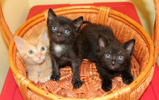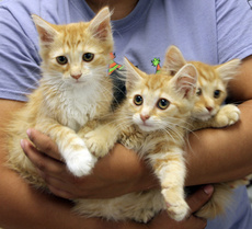 Trisha's kittens consist of one handsome young orange male and two beautiful female black kitties, all with medium length fur. These absolutely adorable kittens are sweet, affectionate, very friendly and playful! And what's more, they get along with dogs, as well as other cats. They are very sociable, completely outgoing - not a bashful one in the bunch.