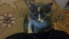 is the most affectionate and sweetest little kitten you ever will meet. She is about 6 months old. As soon as she sees you she purrs so loud you can hear her in the next room. She is not afraid of dogs and loves her friend Philip, the little black kitten who she lives and was raised with. She is very playful, but really loves to curl up in your lap for a kitty massage. Everyone who meets her falls in love with her.