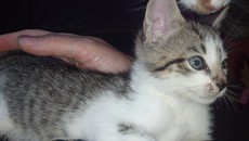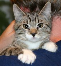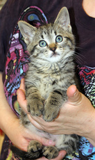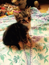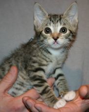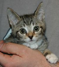 is an adorable 10 week old kitten. Very friendly and happy. Loves people and purrs like a motor.
