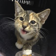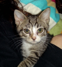 Tammy is an adorable kitten, about 3-4 months old. Very sweet, very friendly and playful. A real little live wire! She is the last of her litter to be adopted and resides now in a great foster home with other cats, and dogs (with whom she gets along). She will make a wonderful family pet.