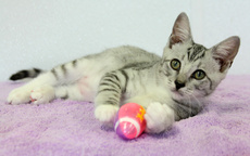 Born 9/18/24 Tristan is a fun loving boy. There isn't a toy he doesn't like and his favorite pastime is carrying his toy mouse around by the tail so he can find the perfect spot to bat it across the floor and start all over again. When Tristan is done playing, he's happy to hang out on the nearest lap. He'll also stand up on his hind legs and reach up for a quick hug and cuddle. He's not very talkative but he will call out to find you if you leave him alone. Tristan will run to greet you at the door if you do have to leave but, with a face like his, you won't be gone long. This boy is ready for a forever family to love him and keep him busy.