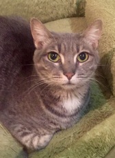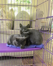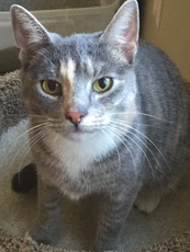 Tracy's Kittens are 12 weeks old (as of 8/28/17) and a charming Russian Blue Mix. Jon Snow (male) and Danearys (female) have been adopted. Only sweet Sansa remains. Sansa is very sweet and sensitive. Although both shy and feisty, with patience, she is a sweet and loving kitten. What's more, she is very gentle, does not scratch, and is quiet. She would be wonderful a wonderful kitten for a family with young children.
