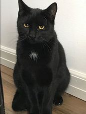 Treat is a bit shy, but very sweet and friendly young adult cat, about 11 months old (as of 4/14/18), who would be a fantastic companion and great friend for your cat. This beautiful black kitty, with an adorable white mark on her chest, is curious, loves to watch people and enjoys being pet. She is truly special! Treat can be visited at her foster home.