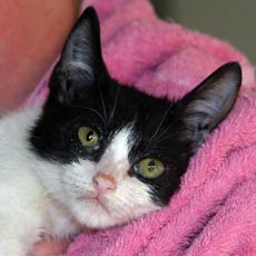 Tux was born in mid-April, and loves to play and engage in all sorts of kitten fun. Tux is up to date with all of his kitten shots and ready for his forever home. This is one wonderful kitty.