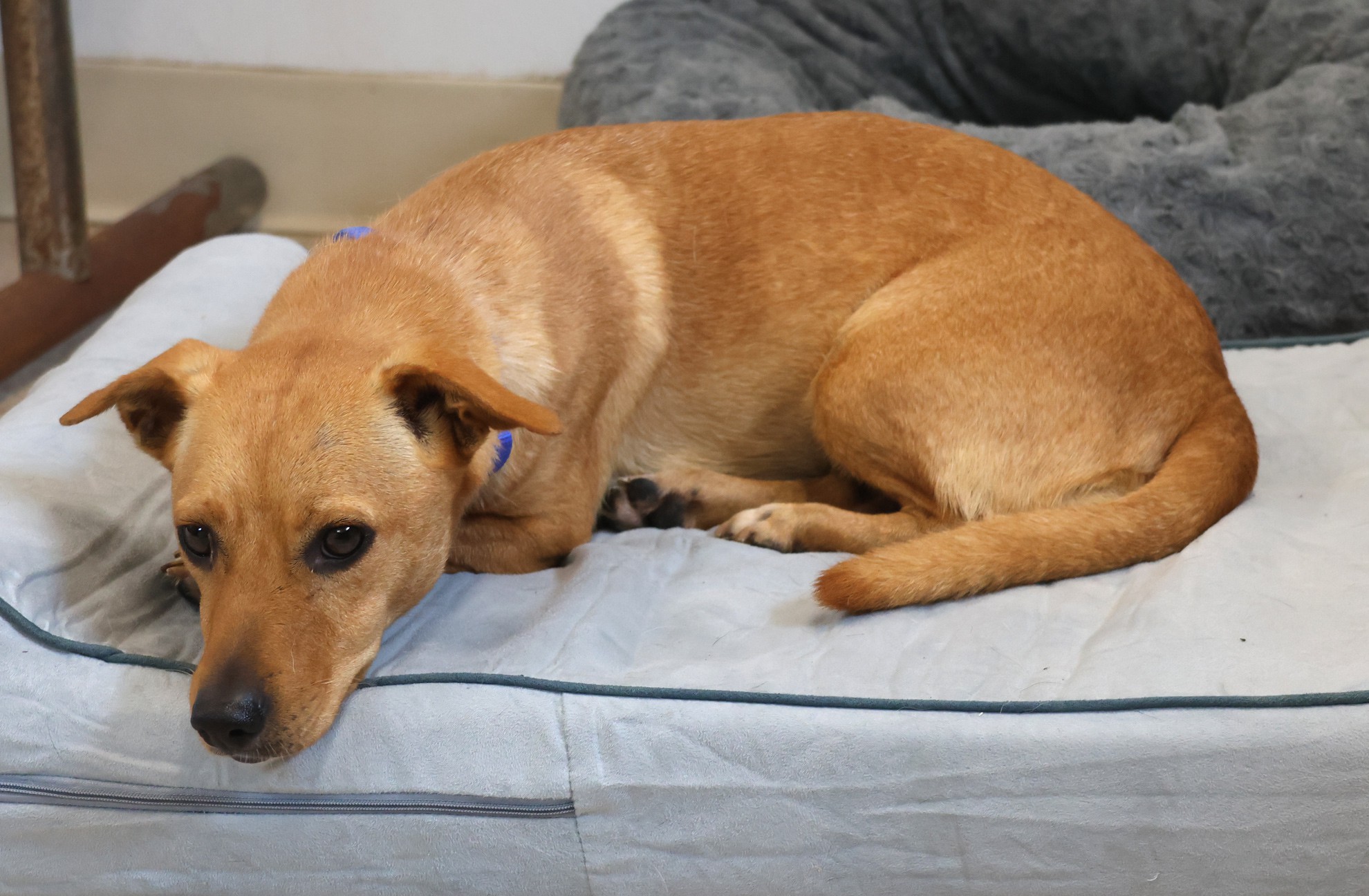 Taffy is a very pretty and sweet girl. She is about 2 years old and loves to run around in the yard. She is learning to walk on a leash and is a little shy around new people. Once she gets to know you, she is a real sweetie pie! She has a gorgeous golden coat and an adorable ridge of reverse fur on her nose. She is an old soul with grace and beauty!