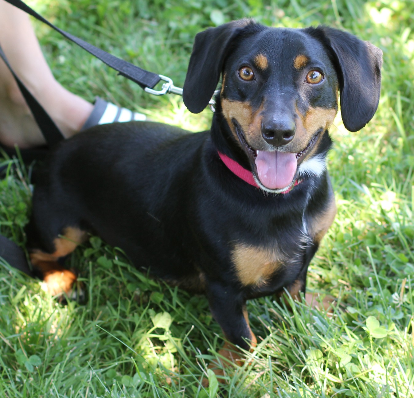 Here is your chance to get lucky... Meet Twix, a very handsome, very smart 2 year old dachshund mix. He is an active boy, who needs lots of exercise, and mental stimulation. Twix is not a fan of being confined in his kennel or crate, but loves to be out and about, where his personality shines. He is curious, and happy when engaged and given a job to do. Twix is food motivated and ready and eager to learn, and is a good candidate for agility training. Twix will do well in an adult home with a family he can call his own forever, who will make him part of their lives. If you are interested in this dog, please submit an application directly to our website at www.ny-petrescue.org. Only applications submitted directly to Petrescue will be considered.