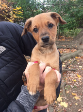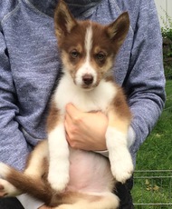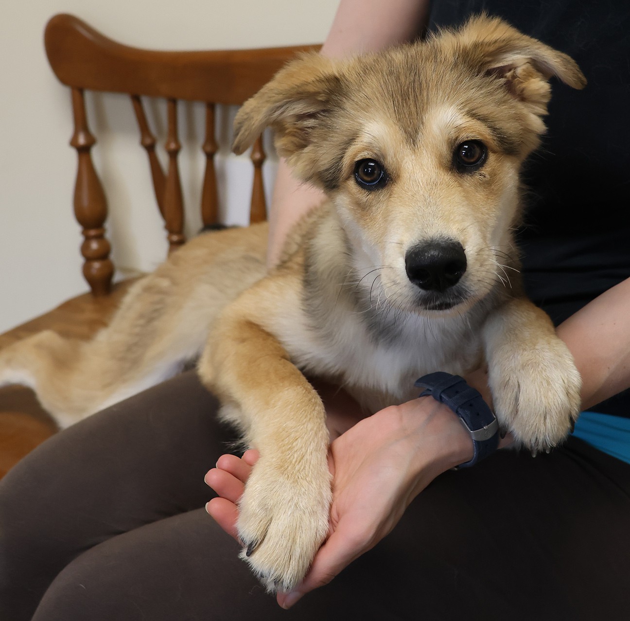 As of 11/6, Tammy is 10 1/2 weeks old and weighs 15 lbs. Her mom was a pure breed Husky, the dad a pure breed Golden Retreiver. She looks more like her mom. She has one blue and one brown eye. Easy going but very sensitive. Friendly and an easy puppy. Would do better in a calm home with another dog. Send in an application from our website: www.ny-petrescue.org.