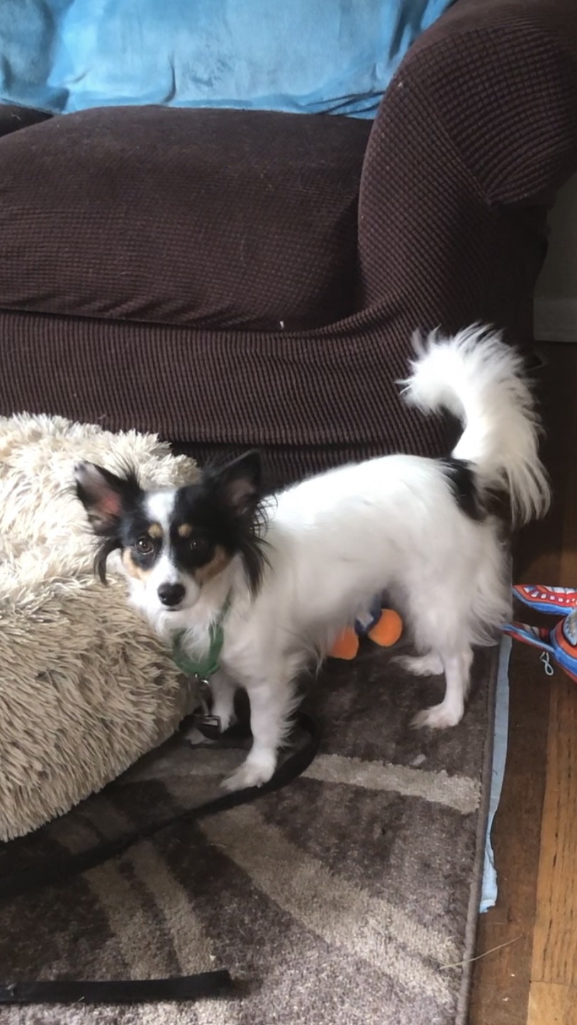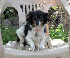 Tulip is an adorable Papillon/Collie mix, about 5 months old and around 15 lbs.