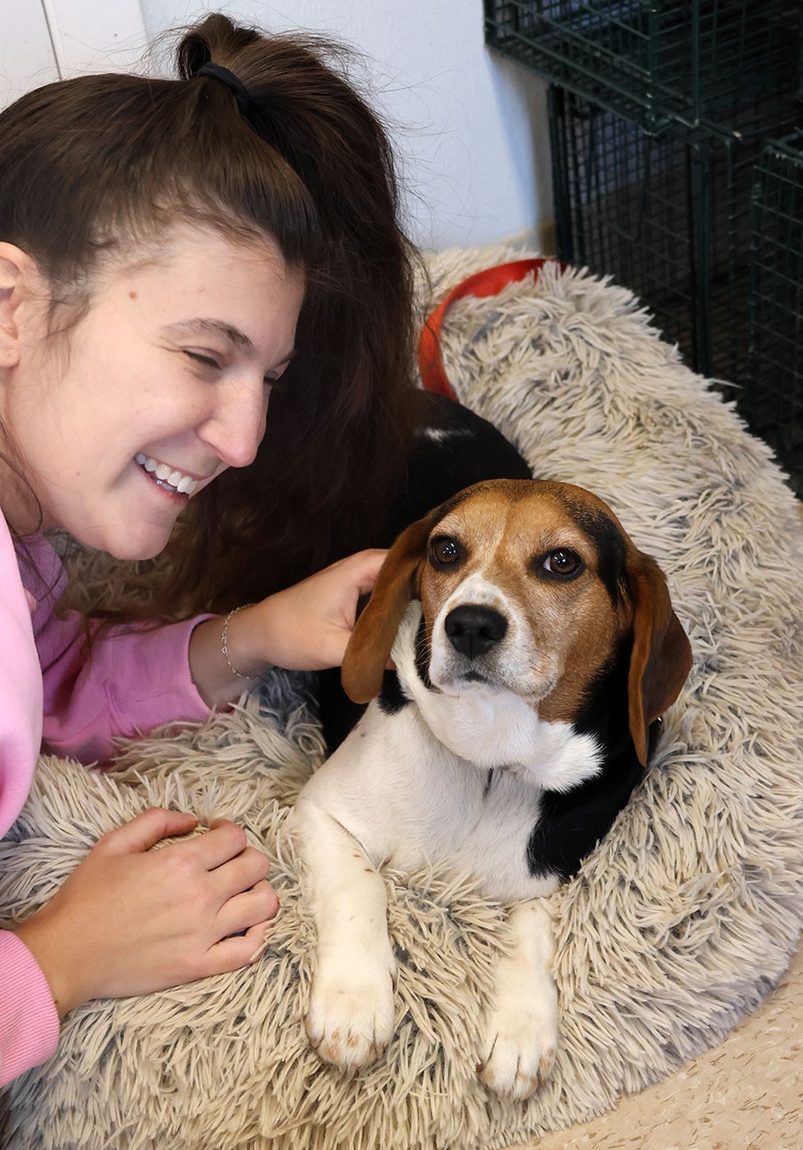 Talia is an adorable 2 year old female Beagle, around 25 lbs and on the shy side. She is a southern gal and not used to the sights and sounds of being in the city - she startles easily and therefore should not go to a home with young children. Although her foster home is working on desensitizing her, she would do best in a calm, quiet home without too much activity. She gets along great with other dogs and is good with cats, too. This gentle soul is on the calm side. She would make a great apartment dog as you barely even hear a peep from her. Like any good Beagle, she likes to follow her nose and should be leash-walked or in a securely (tall) fenced-in yard. Talia is just the sweetest dog waiting for her forever home! The words from another foster mom, while she was vacationing for a week were "She is just Charming!"