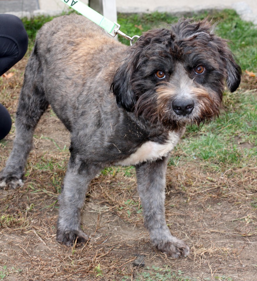 is a beautiful bearded collie mix, about 3-4 years old and around 70 lbs. He arrived with his brother Mike in a very matted condition and both have an appt to be groomed within the next few days. Tyson is a very sweet boy who will steal your heart.