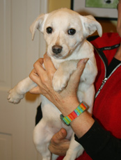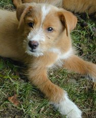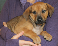 This handsome little boy is Tamba, a Retriever mix - 3 months old and 8-10 lbs. Tamba is one of the "T" puppies. He is the only male in the litter. He is a little timid so we suggest that he find a home with older children. He enjoys playing with his siblings and especially playing with toys. He is paper trained and sleeps through the night. Tamba is looking forward to finding a loving home.