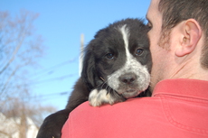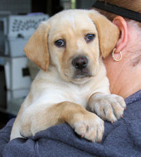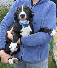 Tanner is an adorable, heart-stealing little lab puppy. Currently he weighs just under 10 lbs. He is extremely inquisitive, and has no problem holding his own amongst the litter of 4 setter\collie mixes whom he is fostering with. As he is quite small next to the other pups, he gets picked up the most by visitors and as soon as he is held, Tanner just melts and snuggles right into you and into your heart!! This little guy will give so much love and laughter to one very lucky family.